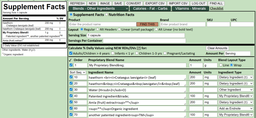You can use HTML tags (markup) to modify and control formatting in ingredient and blend names. Place tags directly in the name field.